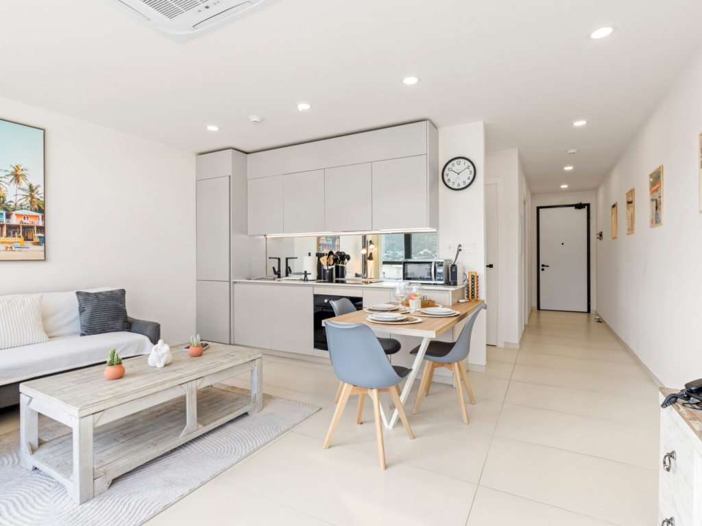 Dès votre arrivée à l’A123, vous serez accueilli par un espace contemporain et lumineux, à la fois chaleureux et raffiné. L’aménagement ouvert crée une fluidité entre la cuisine, la salle à manger et le salon, parfait pour des soirées douillettes ou des matinées relaxantes avec vue.
