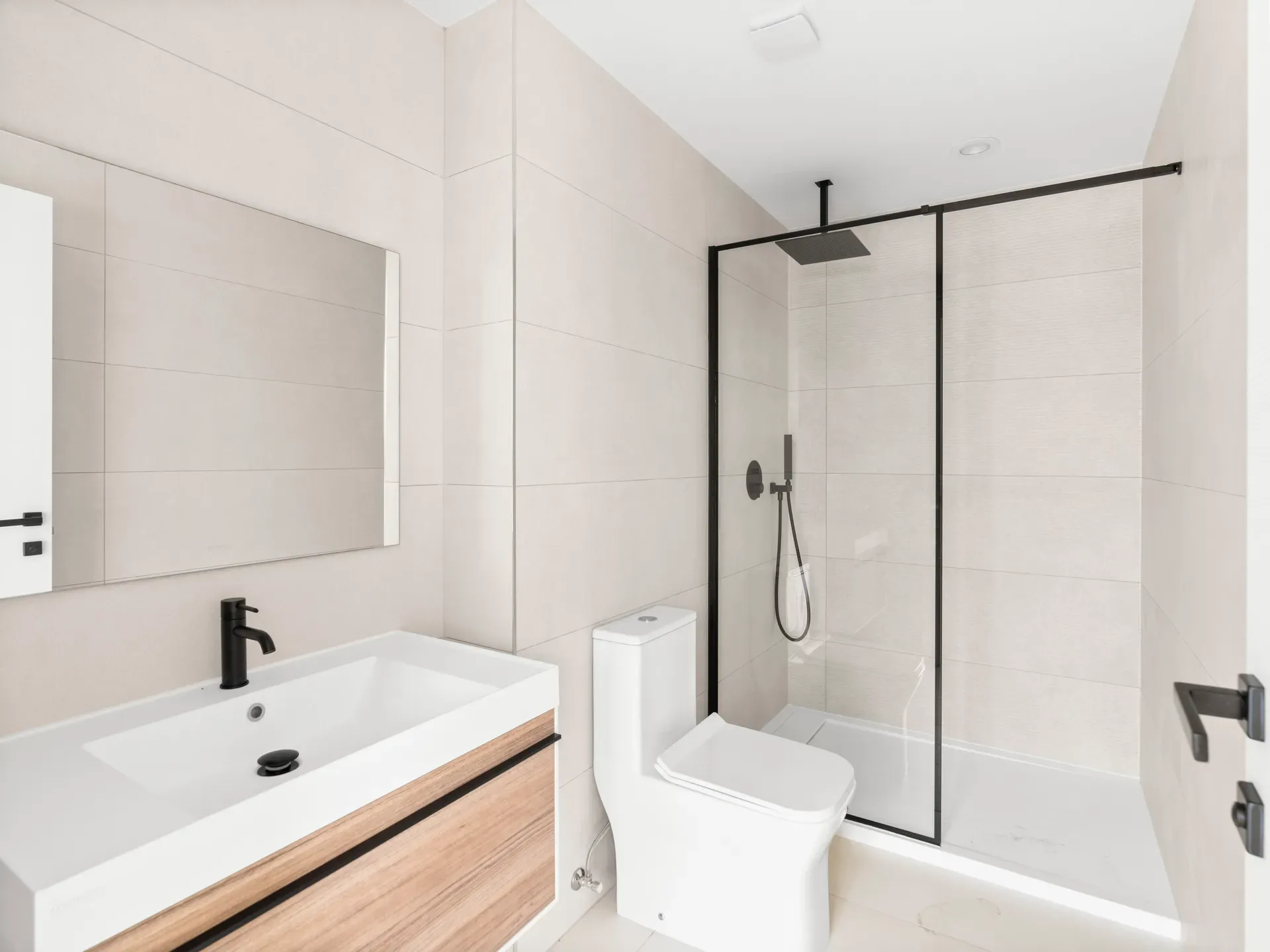Salle de bain contemporaine avec des finitions modernes, alliant élégance et fonctionnalité.