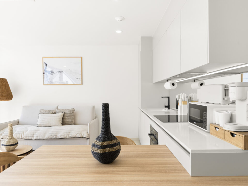 La cuisine entièrement équipée vous permet de préparer tout, d’un petit-déjeuner rapide avant la plage à un dîner romantique avec vue sur l’eau.
