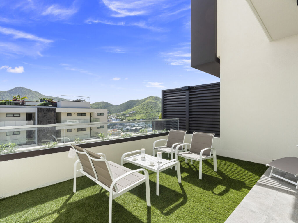 Vous en voulez un peu plus ? En tant que locataire, vous avez un accès complet au superbe toit-terrasse partagé. Faites un plongeon rafraîchissant dans la piscine scintillante, apaisez vos muscles dans l’un des jacuzzis et imprégnez-vous de l’atmosphère incroyable de Simpson Bay vue d’en haut.