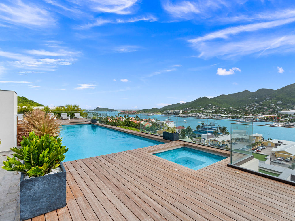Profitez d’une vue sereine et dégagée sur le pittoresque lagon de Simpson Bay dans le confort de votre propriété.
